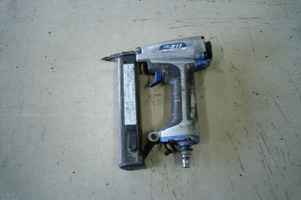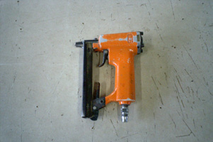 これも板を接着する時の仮止めに使う。ピンタッカーは釘状であるがタッカーはホチキスの大きいものと思えばよい。場所によってピンタッカーとエアタッカーを使い分ける。やわらかい木であればホームセンターなどで売っている手動式のもので仮止めにある程度利用できる。